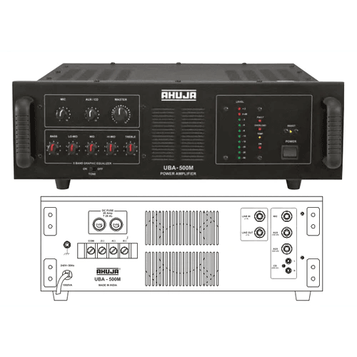 AHUJA UBA-500M 500 Watts DJ & PA Power Amplifier! This powerful amplifier is designed for use in a wide variety of PA applications and DJ performances. The UBA-500M is a 500 Watts amplifier that can be connected to various input sources like a Microphone, PA Mixer, DJ Mixer, CD Player, Cassette Player, Keyboard, and more!