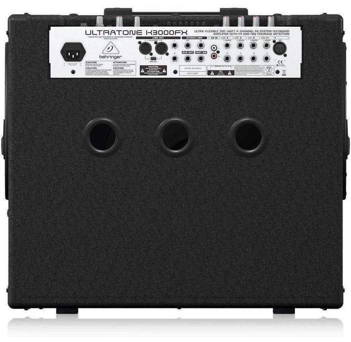 The 300-Watt ULTRATONE K3000FX excels as an extraordinarily versatile keyboard and electronic drum kit amplifier, as well as a high-quality 4-channel Public Address (PA) system, with a world-class, 15″ BUGERA Speaker, all-in-one compact and easy-to-transport package. Specializing in rich, accurate tone and professional features, such as a studio-grade Multi-FX Processor and our own FBQ Feedback Detection System, this powerful workhorse will bring out the best in your performance gig after gig.