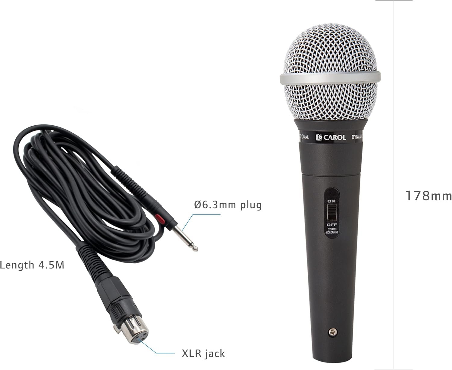 The Carol GS-55 is a multipurpose dynamic microphone designed for vocal performance, speech, and karaoke applications. It features a supercardioid polar pattern for focused sound capture and superior ambient noise rejection. Built with a durable zinc alloy body and metal mesh grille, the GS-55 offers reliable performance in live and studio environments. Its tailored frequency response ensures clear articulation and natural vocal tone. Includes standard XLR output and ergonomic grip design.