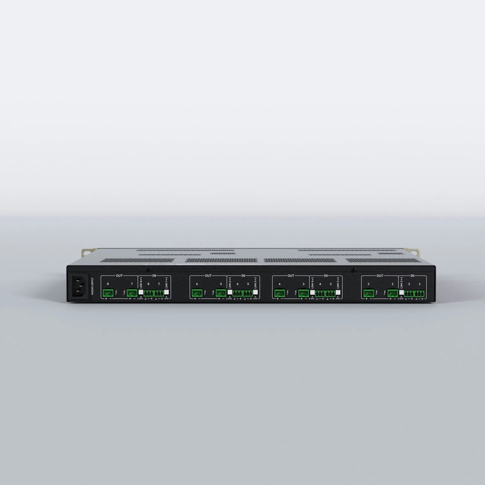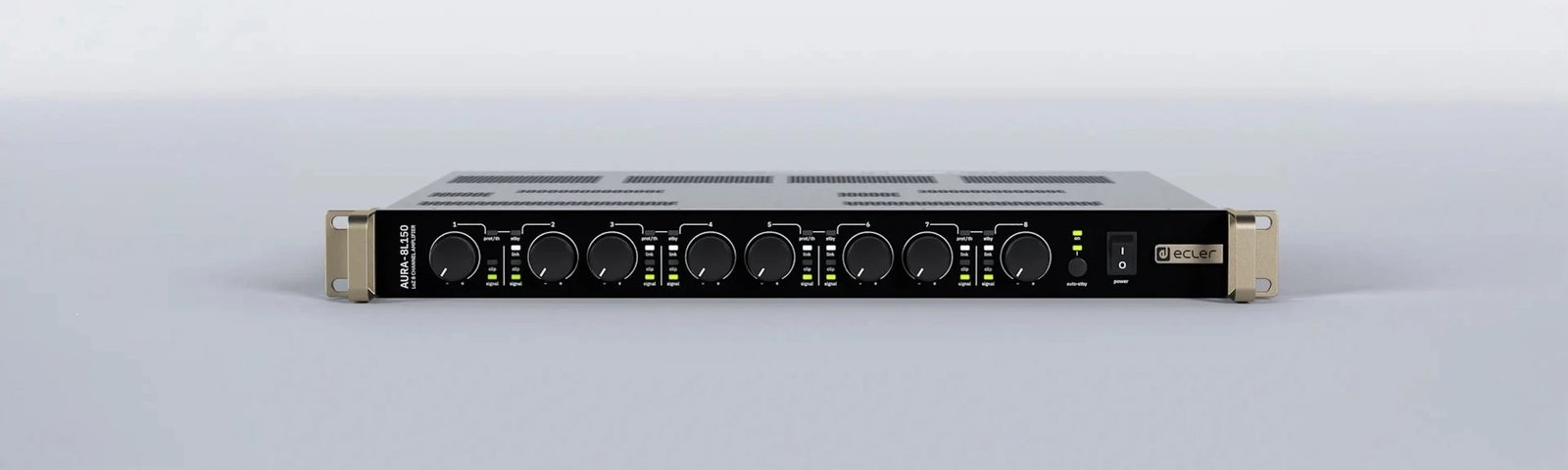 The Ecler AURA-8L150 is a professional-grade, high-efficiency multichannel amplifier designed for demanding commercial and installation audio environments. Delivering 8 channels of 150W RMS @ 4Ω using advanced Class D technology, it combines exceptional sound performance, energy efficiency, and compact fanless design—ideal for large-scale distributed audio systems.