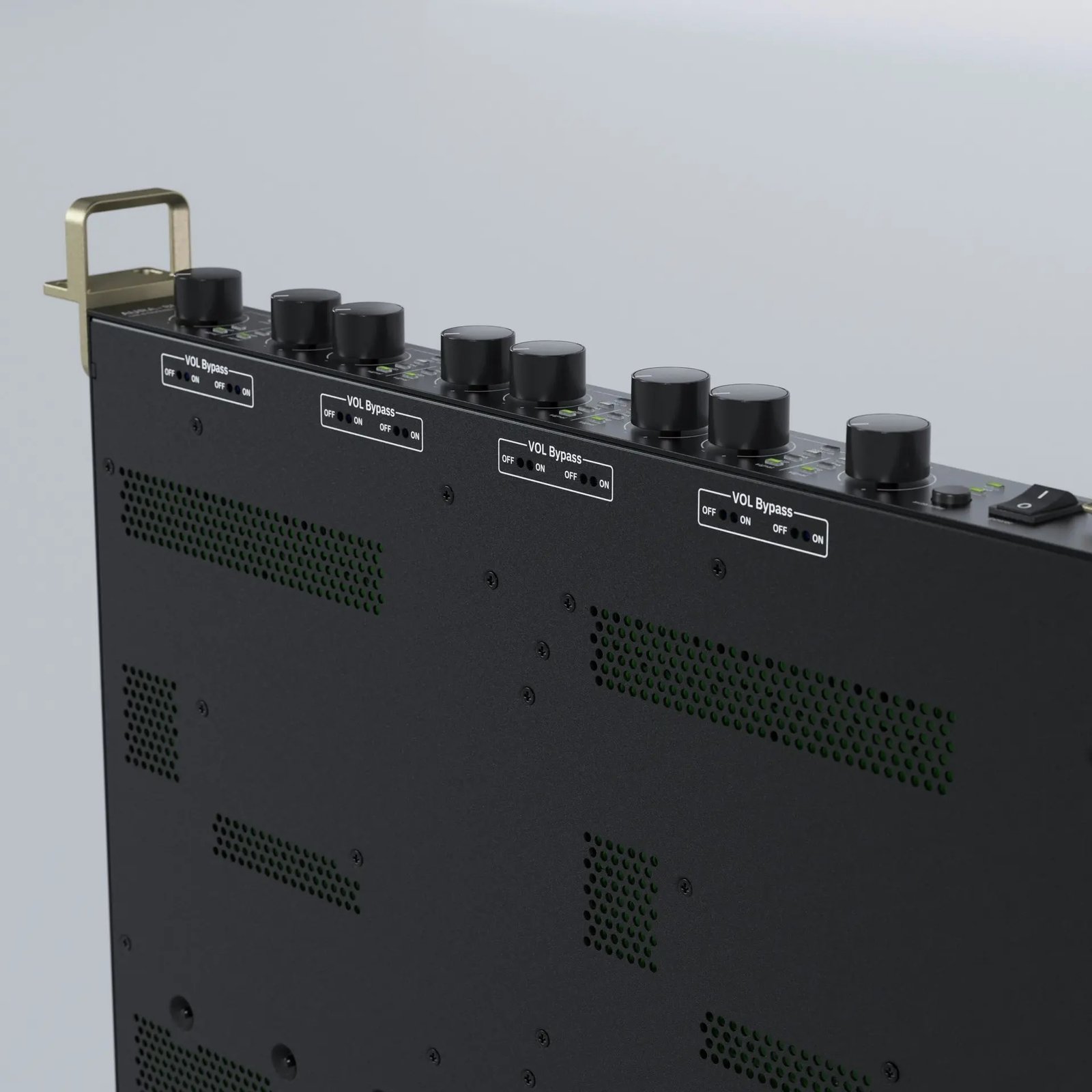 | Attenuators | Front panel knobs per channel (VOL/BYPASS switchable at bottom) |