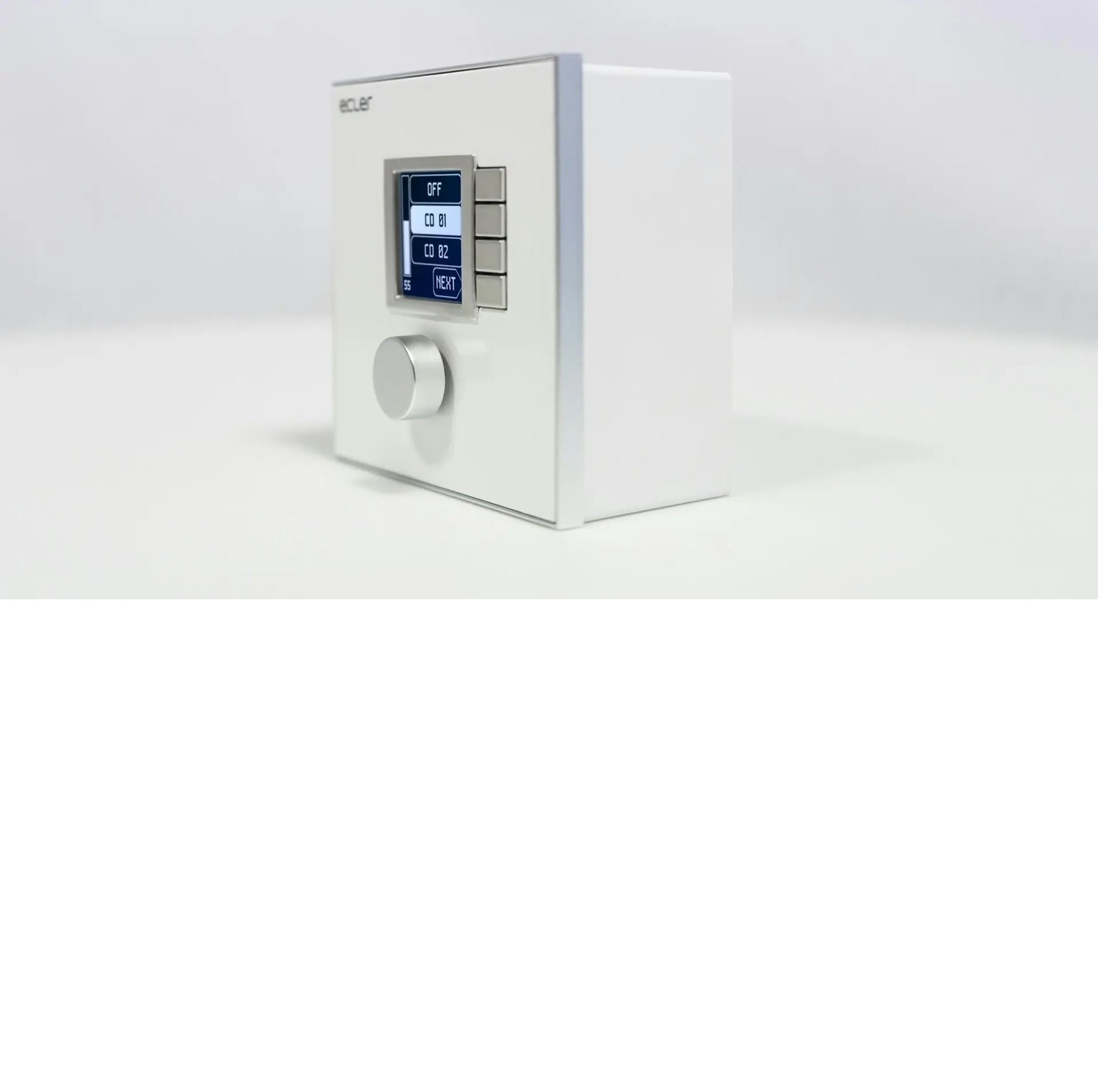 WPNET4KV is an EclerNet compatible wall panel, featuring an LCD screen, a digital rotary encoder and 4 direct selection keys. Its end-user control features are volume control, source and preset selection functions. Equipped with Ethernet interface and compatible with PoE (Power over Ethernet) or local power supply.