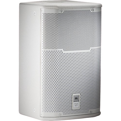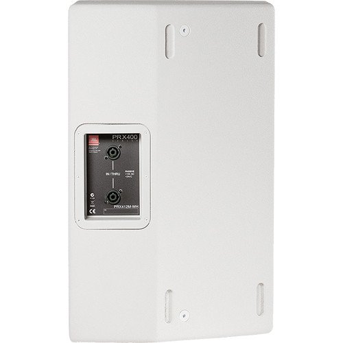The White PRX412M Two-Way 12″ Passive Speaker by JBL has an asymmetrical enclosure shape, allowing it to be used as an FOH main or a wedge monitor. The PRX412M houses a 12″ woofer and a 1″ polymer diaphragm compression driver for 300W of continuous power capacity. The 90 x 50° horn provides smooth, even coverage in both vertical and horizontal orientations.