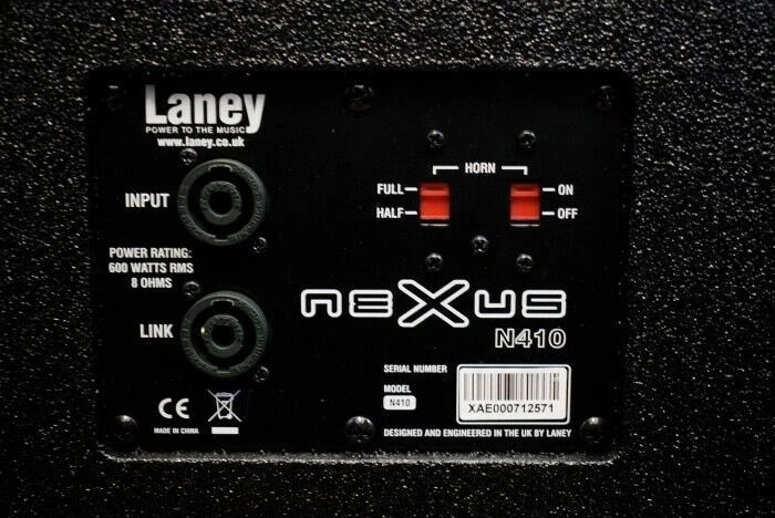The Nexus N410 Cabinet is an ultra-light, high performance bass enclosure, loaded with neodymium drivers and finished in Laney Tuffstuff coating, The Nexus N410 has been designed to be used in conjunction with the nexus-sl and SLS bass head. The N410 is loaded with 4 x lavoce neodymium 10” drivers Plus a La Voce 1" Exit compression driver which is switchable to on/off and half power settings. Selected exclusively for the Nexus range, These Italian-designed speaker components are truly outstanding for bass. The lightweight, heavy duty, plywood cabinet is then finished in Laney Tuffstuff: an incredibly tough, ultra-durable and resilient polyurethane coating designed to deal with the rigors of life on the road.