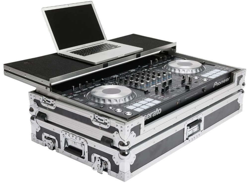 Customized to hold the new Pioneer DDJ-SZ or DDJ-RZ DJ-Controller and an Laptop. Crafted from 9 mm vinyl laminated plywood, sturdy aluminium profiles and heavy duty butterfly latches, it provides you with secure transport and workstation in one. Thanks to the integrated gliding laptop platform and the convenient cable access port, the setup is ready for action in no time at all.