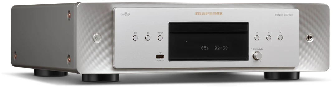 Beyond CD playback, the CD 60 supports high-resolution audio files from USB storage devices, including MP3, WMA, AAC, WAV, FLAC HD, ALAC, AIFF (up to 192 kHz/24-bit), and DSD (up to 5.6 MHz). Its elegant aluminum design, intuitive interface, and seamless integration with Marantz amplifiers—such as the MODEL 40n and MODEL 30—make it a stunning addition to any audio setup.