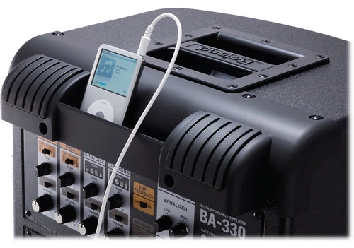 The Roland BA-330 Portable Stereo PA Amplifier and Speaker System is a rugged and lightweight self contained PA system with four 6.5″ speakers, two tweeters, plenty of microphone and line inputs for instruments and stereo player devices, and onboard effects processor. The BA-330 is constructed to handle the rigors of life on the road, but is also lightweight and easily portable with a handle and built-in tilt-back stand for using the BA-330 as a stage monitor. The BA-330 is well suited for portable PA applications, presentations, instruction, education and much more.