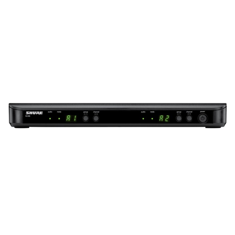 The BLX288 dual-channel receiver is compact yet powerful, offering intuitive controls and clear LED indicators for monitoring audio and RF signal strength. Each channel operates independently, allowing for flexible configuration and reliable performance. The Shure BLX288UK PG58 Dual Wireless System operates within the H8E frequency band, ensuring compliance with regional wireless regulations while delivering optimal signal quality.