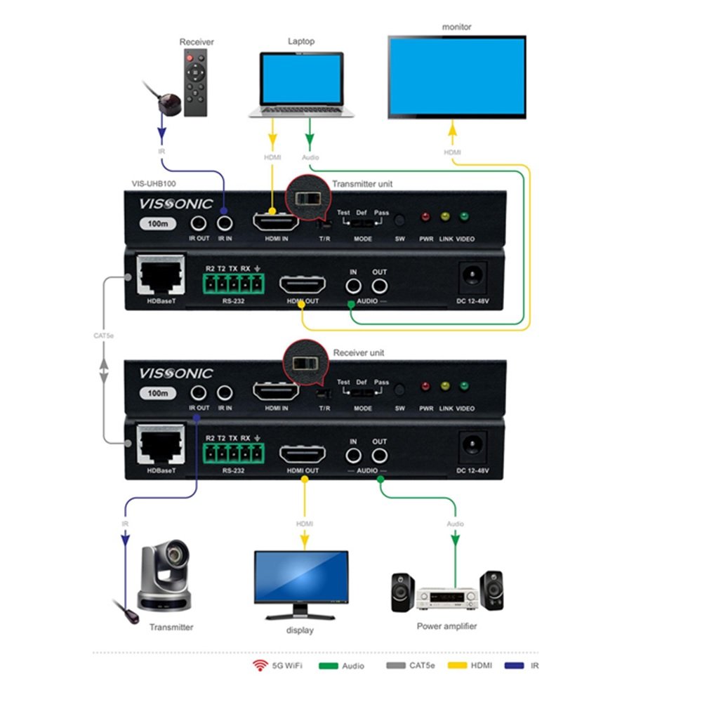 Another key benefit is its versatility. The VISSONIC VIS-UHB100 HDBaseT Extender integrates seamlessly with a wide range of AV equipment, including projectors, displays, matrix switchers, and conferencing systems. This flexibility makes it an excellent choice for integrators and professionals looking to create scalable and adaptable AV solutions.